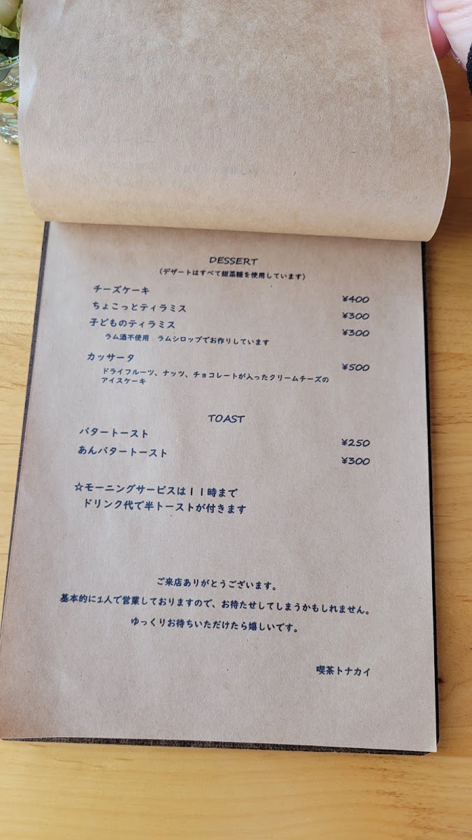 Tonakai isn’t just a cafe; it’s a quiet retreat where you can savor the art of coffee and dessert amidst a whimsical atmosphere. Whether you choose a refreshing カッサータ, crafted with precision, or indulge in a unique beverage like mint latte or chai, you’re guaranteed to leave with a satisfying experience that makes you want to return for more. Each visit feels like a gentle hug, offering both comfort and inspiration.